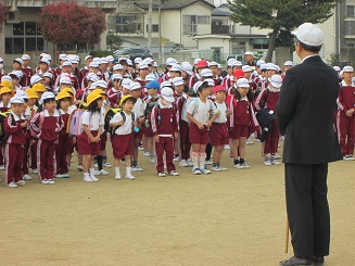 快晴の空のもと,市鼓笛パレードに参加しました。