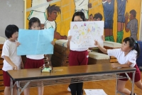 2016年9月26日 13時48分9月23日(金)なかよしタイムに1~3年生を集め、1年担任の先生がリングプレーンの作り方を紹介しました。