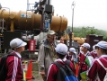 9月12日(月) エネルギー学習の一環で、元気アップつちゆが行っているバイナリー発電所を見学に行きました。直接、温泉の蒸気を活用するのでは無く、温泉の熱で別の液体を蒸気にさせる仕組みを教わりました。また、温泉の熱で、調理した卵やトウモロコシを美味しくいただきました。