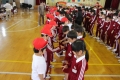 6年生と手を結び入場した1年生を拍手で迎えるところからスタート、