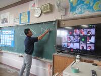 本日は全市一斉オンラインの日でした。本校では、朝の健康観察から1校時の授業をオンラインで行い、その後、10時まで登校するという流れで行いました。1年生では、担任が子どもたちが分かるように絵を示しながらやりとりをしていました。むつ華学級でも今日のスケジュールを確認しました。他の学年でも、担任が「今の発表がよかったと思う人はいいねボタンを押してみて。」という指示を出したり、オンライン上で子どもたちの意見をつないだりするなどして授業を行いました。
