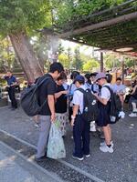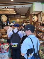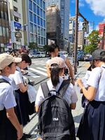 浅草寺近くで班ごとにフィールドワークをしました。20のミッションをクリアするため、子どもたちは協力して外国人観光客へ話しかけたり、印を探したりしていました。