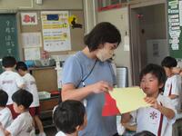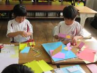 本日、1年生で図画工作科の授業研究をしました。子どもたちは、ハサミの安全な使い方を覚えて上手に切ったり、自分の発想で画用紙を折ったして愉しみながら学習をすることができました。1年生が入学して半年が過ぎようとしています。子どもたちの姿から成長を感じました。