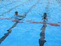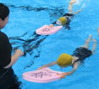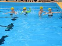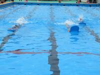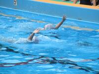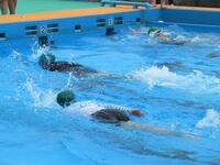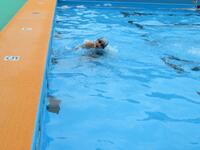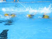 本日、1年生の水泳記録会を3校時目に行いました。水泳記録会という名称ですが、低学年の「水遊び」では、水につかって歩いたり、走ったりすることや息を止めたり吐いたりしながら水にもぐったり浮いたりすることが目標となります。本日の種目も水中かけっこやビート板をつかって浮いて進むもの、そして自分でもぐったり浮いたりして進むものでした。1年生はこれまでの練習を生かして、スイスイと水をかき分け走ったり、一生懸命に泳いだりして、とてもがんばっていました。1年生の記録会にも多くの保護者の皆様に応援に来ていただきました。感謝申し上げます。
