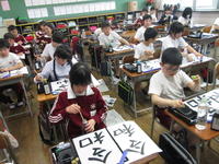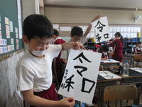 今週5年生の書写の時間には毛筆のオリエンテーションの後、「令和」を毛筆で書いてみました。