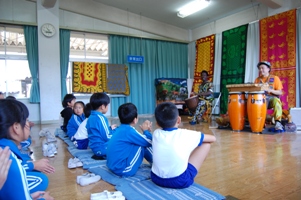 ちょっと前ですが・・・11月10日に文化芸術体験事業「アフリカ民族音楽」の鑑賞会がありました。アフリカン・エキスプレスのお二人(アブドゥさんとトニー山本さん)がいろいろな珍しい楽器でアフリカの音楽を演奏してくださいました。曲を聴いているとアフリカの風景が目に浮かんでくるようでした。