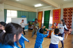 セネガルから日本に来たアブドゥさんはダンスの先生もしているそうです。みんなで本場のダンスを踊りました。先生方も一緒に踊りました。