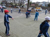 1・2・3(女子)・4年生は国語を,3年生(男子)は体育を行いました。体育館が卒業式準備で半分しか使えないため,3年生は男子と女子に分かれて授業を行いました。
