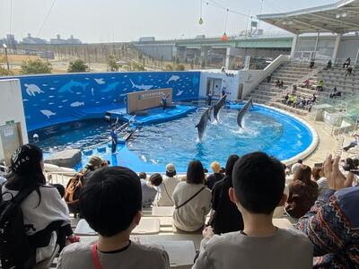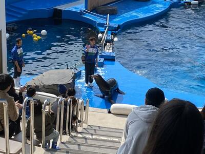 アシカが首で輪っかをキャッチしたり、イルカが高くジャンプしたりと、迫力のあるパフォーマンスでした。
