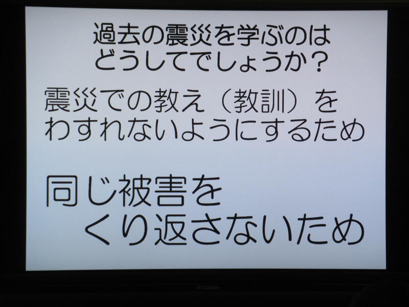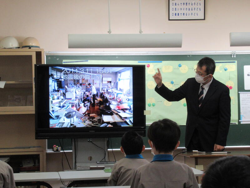 大きく揺れる中で棚を必死に押さえたこと、学校から外を見ると地面が波打っていたこと、家族と連絡が取れず心配な気持ちがつのっていったこと等、生の体験の話を聞くことが、子どもたちの心に響いた様子でした。