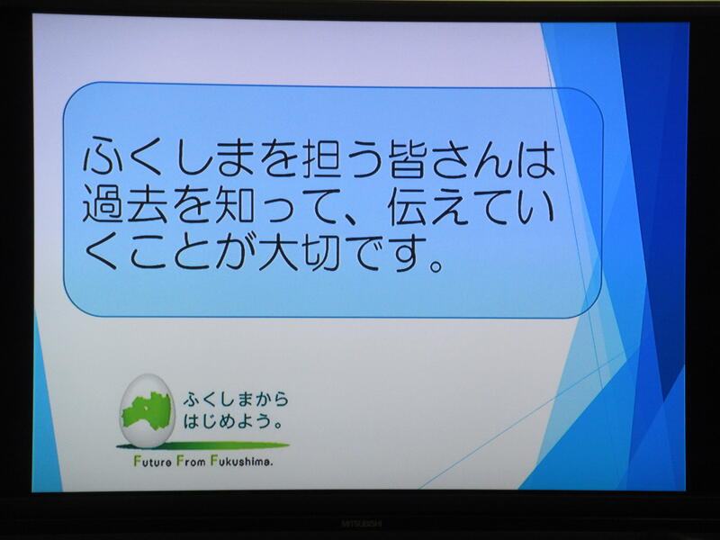 また、津波がすべて押し流していく様子や原発の水素爆発の映像等を見て、とてつもない災害だったということをあらためて実感するとともに、福島県が置かれている現状についても教えていただきました。