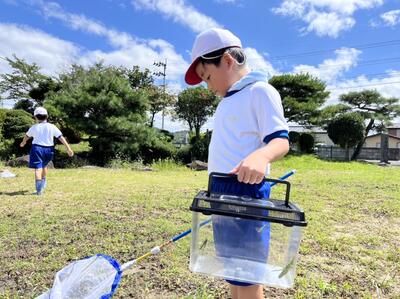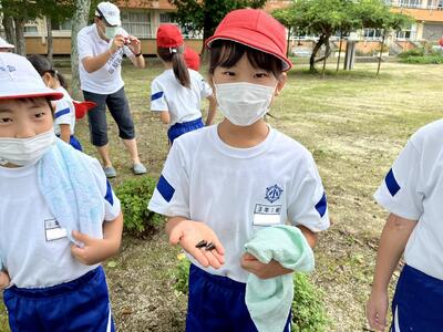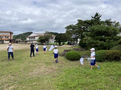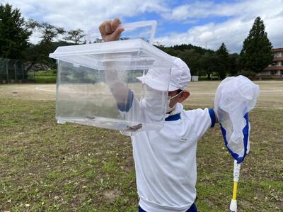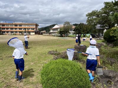 9月6日 1・2年生が3時間目の生活の時間に校庭で虫とりをしました。