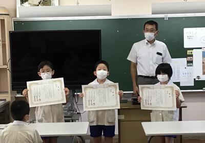 福島地区小学校理科作品展に応募し、3人の児童が銀賞をいただきました。