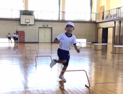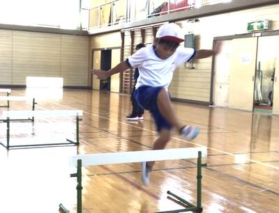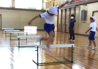 8月29日 1・2年生の体育の授業でハードル走を行いました。