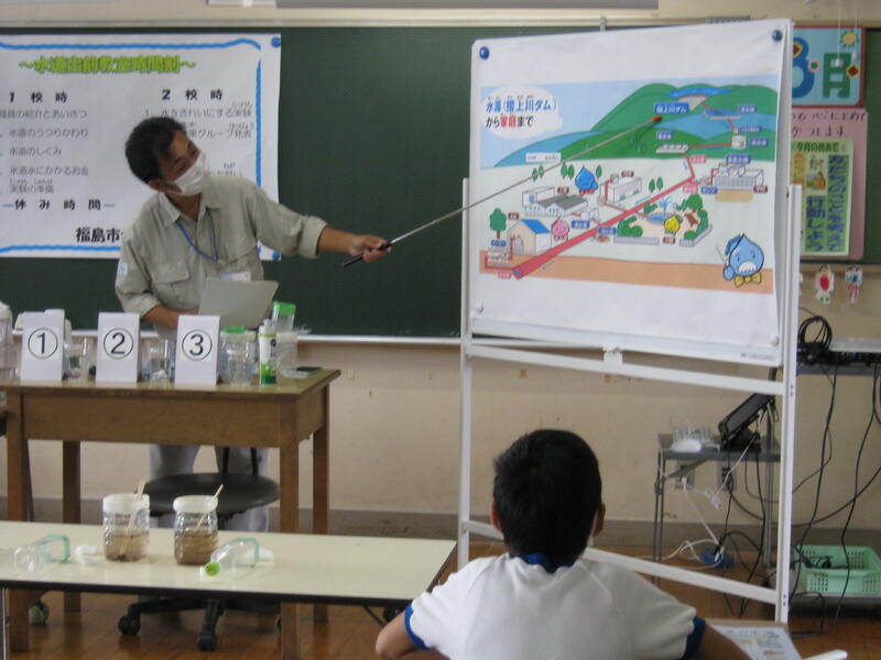 また,すり上浄水場で作られたおいしい水を福島市内の全家庭に届けるための水道管の長さは,約1600km(福島から鹿児島県の奄美大島くらいまで)になることにも驚きの声が上がりました。