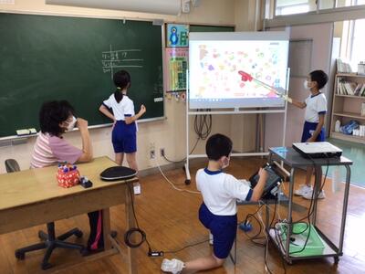 8月24日 3・4年生の外国語活動の授業はジェシー先生に教えていただきました。