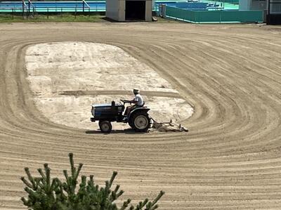 用務員の渡邉さんが、校庭をいつも整備してくれています。