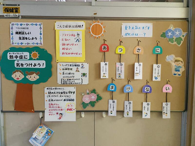 7月になったので、保健室前の掲示板も夏仕様になりました