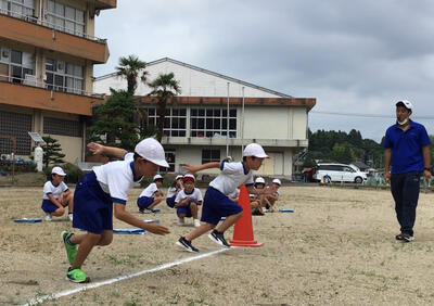 初めに、50m走のタイムを計測します。6年生が下級生の記録用紙を預かり、記入をしてくれました。6年生はとても面倒見がいいですね。