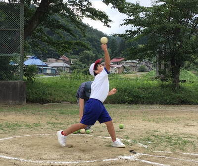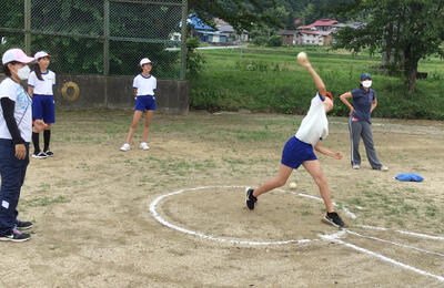 6年生の男子は力強いフォームで、下半身や腰、肩、ひじの使い方がとても上手でした。