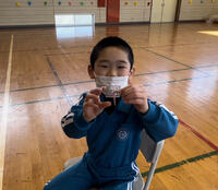 閉会式では6年生の記念品を贈呈しました。贈呈者は2年生です。