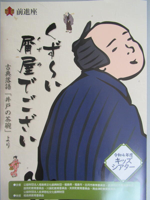この劇は、「くず~い 屑屋でござい」と大声を出しながら江戸の長屋を回る、正直が取り柄の働きものの清兵衛さんのお話です。屑屋さんは、紙くずなどを買い取って集め、またすきなおして紙を売る仕事だそうです。