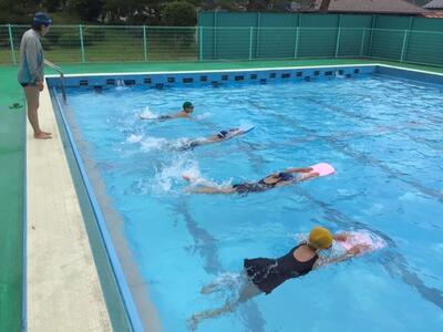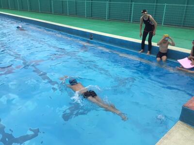 みんな、上手にバタ足を使って泳げるように上達していました。