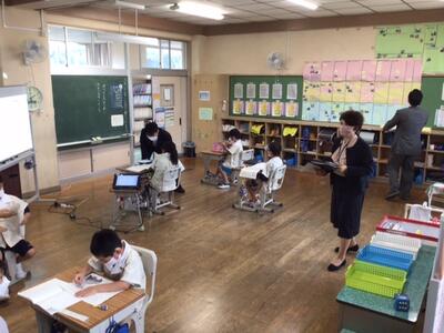 6月22日 県北教育事務所の所長様と次長様が授業を参観されました。