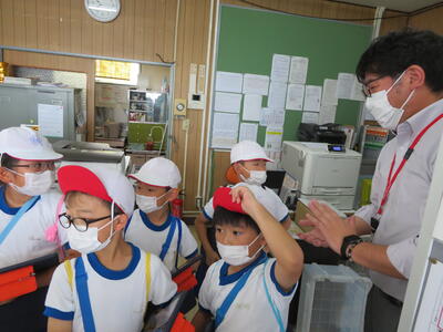 普段は見られない,郵便局の中の様子も見せていただきました。どんなお仕事をしているのかも質問し,手紙を配達するだけではないことを知りました。