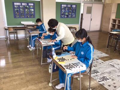 6年生は、1回目に教えていただいたことに気をつけながら集中して書写を行っていました。