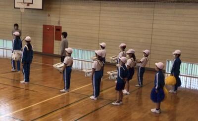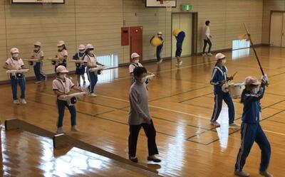 6月5日(日)に水原小学校と水原地区の合同運動会が開催されます。運動会では校庭で鼓笛を披露する予定です。本日は雨なので体育館での練習です。校庭での行進の仕方など動きを全体で確認し、実際に行ってみました。