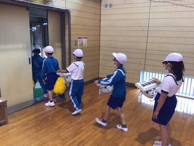 練習が終了し、1・2年生は楽器を持って、一列に整列して教室に戻りました。