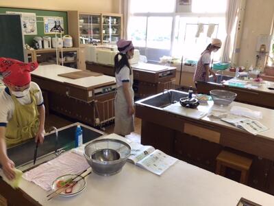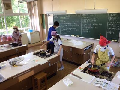 少人人数の水原小学校は、調理実習は一人一人行います。グループで料理する必要がないので、コロナ対策も確実に行えます。