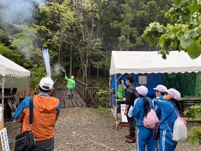 水原小学校の6年生がガイド活動をするので、『水原の自然を守る会』のスタッフのかたが花火を上げて下さいました。とても大きな音がして、熊よけにもなるとのことでした。