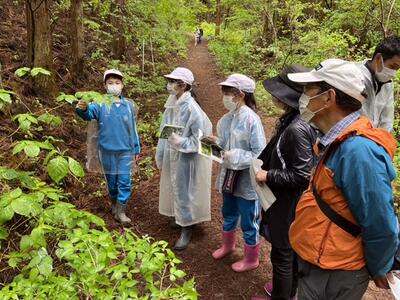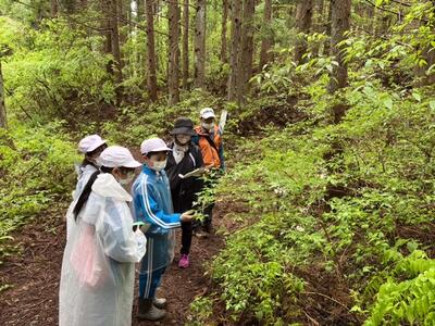 ※ちなみに、今回、案内を聞いてくださった方は『NPO法人 福島県もりの案内人の会』県北地区支部長さんでした。子ども達の説明を熱心に聞いてくださり、そして、説明についてアドバイスをいただきありがとうございました。来週の5月19日の2回目のガイド活動に活かしたいと思います。