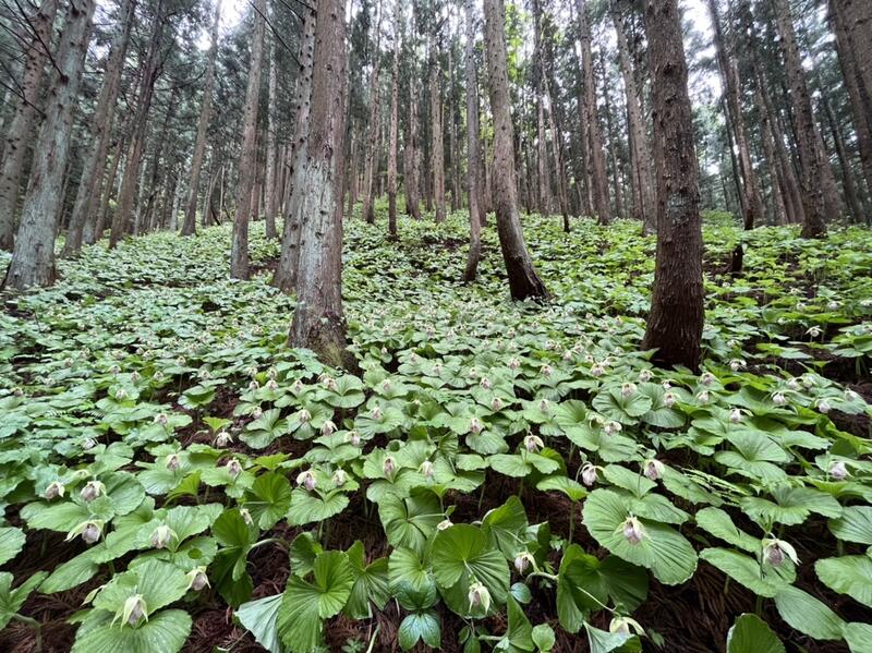 20分ほど山道を登っていくと、クマガイソウの自生している群生地に到着です。
