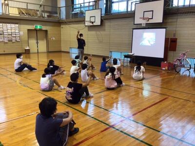 全体で自転車の乗り方や交通ルールについて確認をしました。