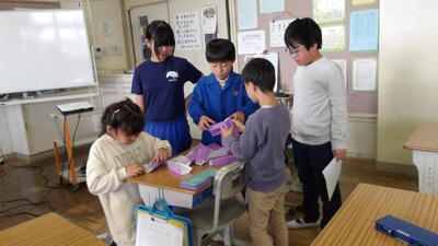 12月4日(水)に、12月の全校集会を行いました。今回の全校集会は、清掃班単位で「脱出ゲーム」を行いました。異年齢集団で認め合い、支え合い、課題をクリアすることで、考動力「かかわる力」「むきあう力」を養うことをねらいに行いました。