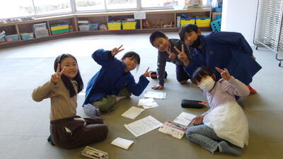プレゼントがなくなってもみんな楽しく遊んでいたので、1年生の子ども達も大満足でした。学校の中では、一番小さい学年としてお世話をされることが多かったのですが、自分達がお世話をすることができたのはよい経験だったと思います。