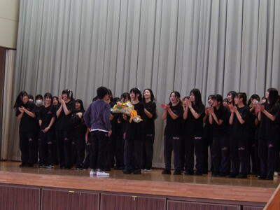 後半は、パリオリンピック・パラリンピックのことを中心にお話していただきました。その中で心に残った言葉がたくさんありました。メダリストに「メダルをとるためには?」と質問したところ、「1、応援される人になる」「2、仲間がいる」という答えが返ってきたそうです。「練習する」「努力する」という言葉をイメージすることが多いと思います。スポーツする上で大切なことをたくさん教えていただきました。