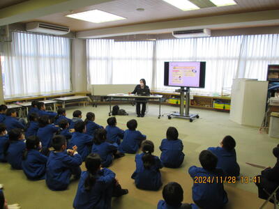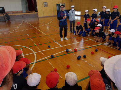 10月31日(木)、福島県障がい者スポーツ協会より、村上 光輝先生をお招きし、ボッチャ体験出前教室を開催しました。村上先生は、パラリンピックの日本チームにも関わっており、日本においてのボッチャ競技の発展だけでなく、様々なスポーツの振興・発展にご活躍されているそうです。