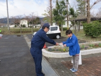 明日13日(木)も別の子ども2人が同乗し,地区内に広く呼びかけます。