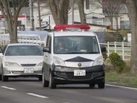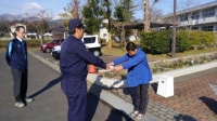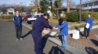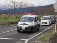 初日の今日(12日)は,代表2名が,福島警察署庭塚駐在所の警察官と一緒にパトカーに乗って土船方面から交通安全の啓発活動を行いました。