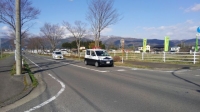 2017年4月13日 12時00分初日に続き,2回目の今日も6年生の代表2名が,福島警察署庭塚駐在所の警察官と一緒にパトカーに乗って交通安全の啓発活動を行いました。