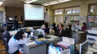 校務用のパソコンに早く慣れて仕事を効率的に進めるために,12日(水),放課後に講師を招いて「ネットワーク研修会」を行いました。