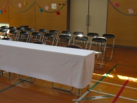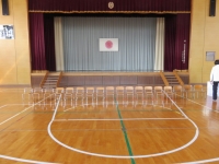 入学式会場で新1年生が座る椅子も近くの保育園(今は閉園中)からお借りしてきました。明日,5,6年生で花を飾って入学式会場は完成です。