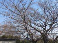 校庭で一番最初にさくらもつぼみは膨らんでいますが,固い状態です。