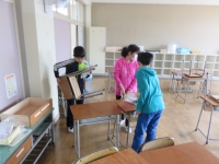 4,5年生が各教室の備品の移動や清掃などを行いました。