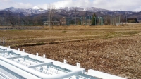 フルーツラインの吾妻中学校近くの歩道脇に立てられていた防雪棚が折りたたまれました。久しぶりに歩道から吾妻連峰が見えました。