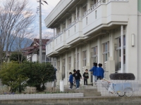 風は冷たいのですが,下学年の子どもたちはベランダで技能主査の先生の見守る中なわとびをしていました。